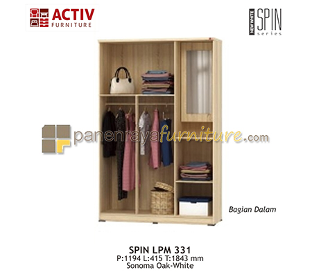 LEMARI PAKAIAN 3 PINTU CERMIN ACTIV SPIN LPM 331 SONOMA OAK-WHITE 120x42x185