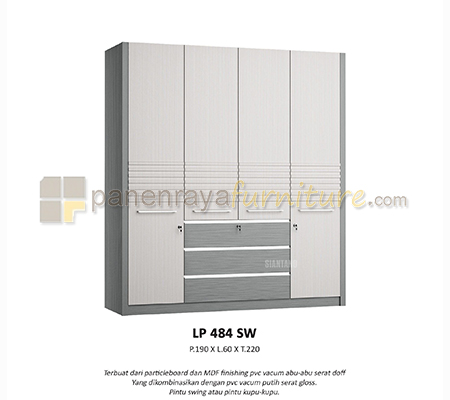 Lemari Pakaian 4 Pintu Siantano LP 484 SW 190x60x220 Grey-White wash